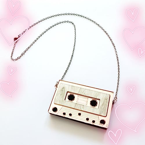 • ✪ Cassette Necklace: Vintage-inspired design. Has a nice retro 80's vibe to this necklace. Features a cassette tape pendant necklace for a retro, nostalgic look. Make a statement in this pretty necklace