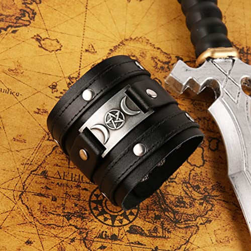 HZMAN Leather Bracelets for Men Viking Retro Wide Cuff Bracelet Black Leather Wristband Bracelet Jewelry Gift 5