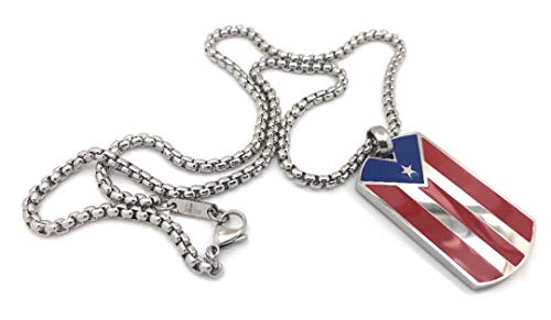 HOT ! Papiichulo Stainless Steel Puerto Rican Pride Dog Tag Necklace – Featuring Authentic Red, Blue, and Silver Flag Design – Ideal Expression of Cultural Orgullo and Style