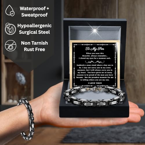 • THOUGHTFUL MESSAGE CARD - The "To My Son" bracelet includes a personalized message card, making it a perfect graduation gift idea, wedding gift, or birthday gift for sons from their parents.