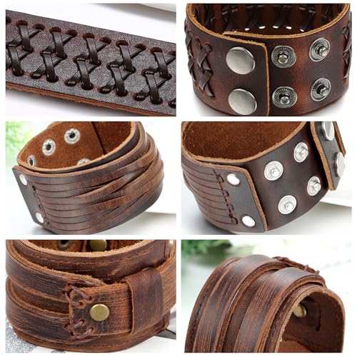 OIDEA Assorted 3pcs Mens Punk Multistrand Leather Braided Bangle Cuff Bracelet for Biker Dad Father Size Adjustable 5