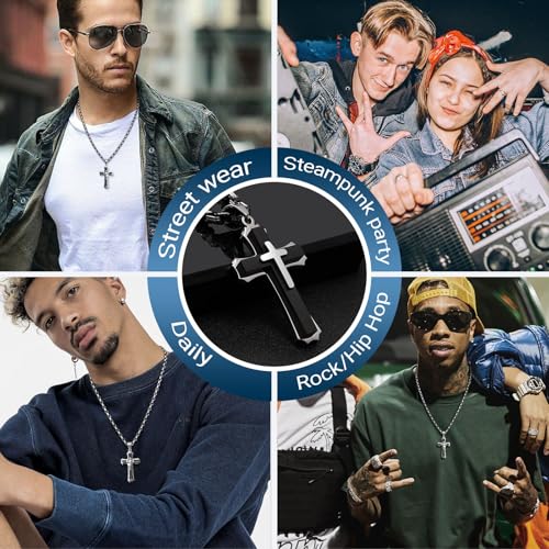 • 【Sturdy Stainless Steel Necklace】Crafted from premium 316L stainless steel, this corrosion-resistant cross chain necklace for men withstands daily wear, sweat, and moisture. The hypoallergenic black silver finish retains its bold color without fading or tarnishing over time