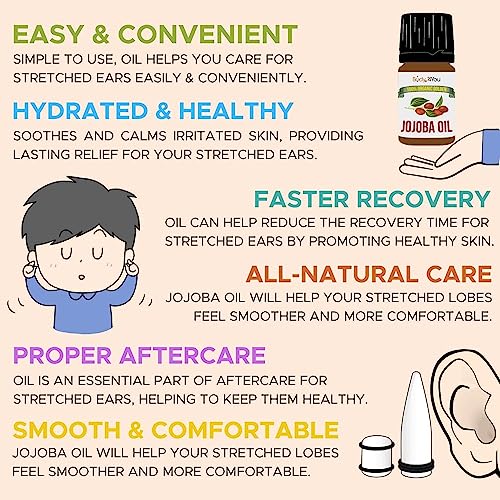 • HEALTHY STRETCHING: Jojoba Wax is a USDA Certified Organic, Chemical-Free Natural Care Solution for Safe Gentle Piercing Experience. Oil Moisturizes and Thickens Skin, Calms and Prevents Irritations by Forming Nourishing Oily Layer. Speed Up Recovery and Reduce Swelling, Minimizing Chances of Skin Cracks, Elevated Bumps, and Keloids.