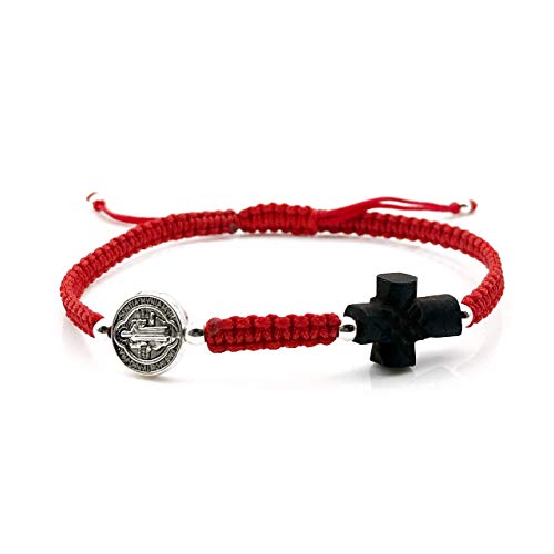 St Benedict Medal Adjustable Red String Protection Bracelet for Mens Pulsera San Benito para Hombre 1