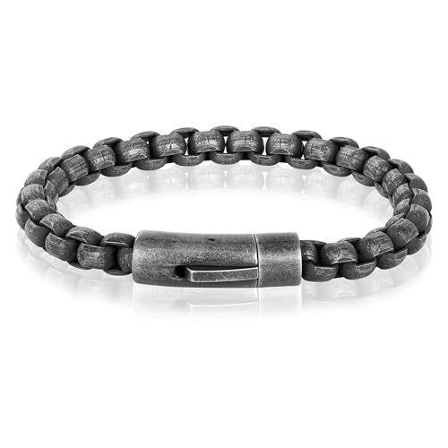 • COMFORTABLE AND SECURE FIT – With a wearable length of 8.75 inches, this gunmetal bracelet ensures a comfortable and secure fit for most wrist sizes. The 8mm polished box chain fastens with a reliable lobster clasp, keeping the bracelet in place throughout the day while maintaining its sleek appearance.