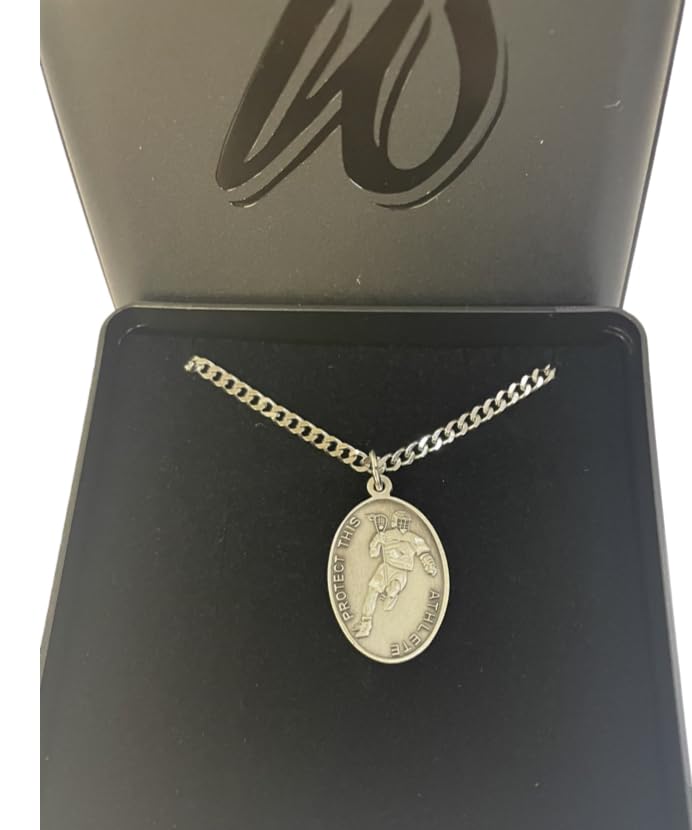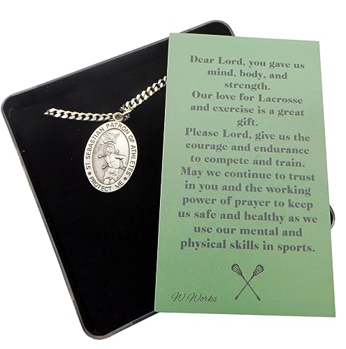 HOT ! Westmon Works Lacrosse Medal Necklace for Men with St Sebastian Pewter Medallion Stainless Steel Chain Boxed Set with Prayer Card Saint Expressions Premium Jewelry for Athletes