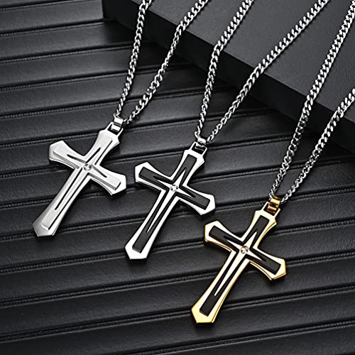 JO WISDOM Cross Necklace 316L Stainless Steel Titanium Steel Cross Crucifix Pendant Cross Black and Silver Religious Jewelry for Men and Women with Pearl Chain 3