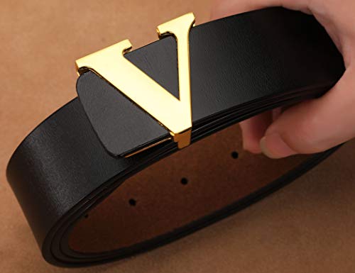 Men's Classic Gold/Silver V-Buckle Design Soft Calfskin Belt 4