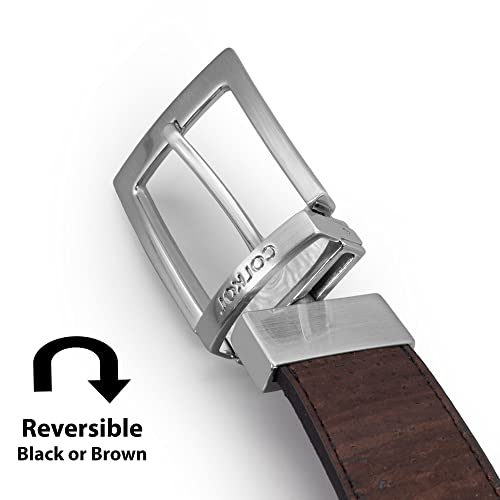 Cork Reversible Vegan Belt – Adjustable 1.37-Inch Wide Men's Dress & Casual Belt – Black & Brown, Water-Resistant 1