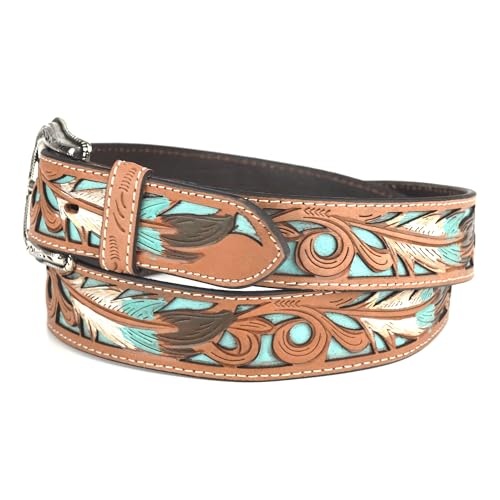 HOT ! Nocona Western Belt Mens Feather Tooled Filigree Inlay N210006002