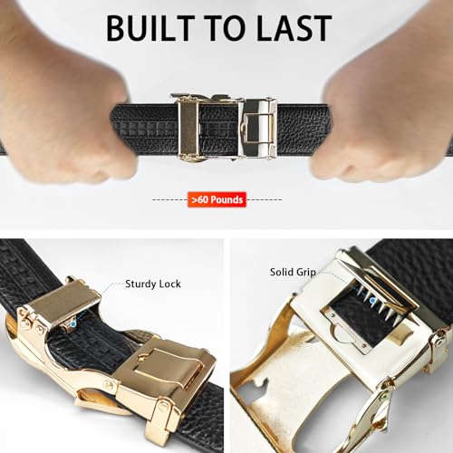 • 【Convenient Ratchet Design】:The ratchet belt is easy to use, you only need to thread the belt through the buckle 。The track of adjustable belts contains between 32 adjustment notches ,This innovative design allows the ratchet belt to provide 1/4" micro adjustments,Keep the belt perfectly fitted to your waist which making you comfortable all day long.