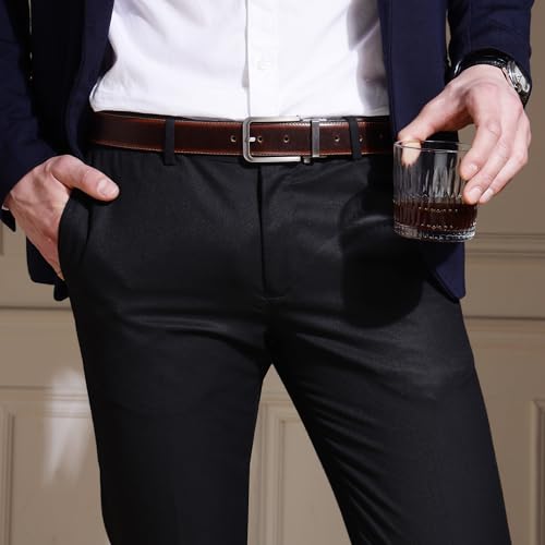 Men's Genuine Leather Belt - Dark Brown Dual Color Effect Auto-Lock Buckle Business & Casual Formal Belt Wrinkle Free 5