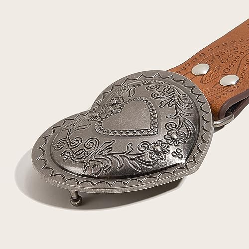 • Outstanding from the crowd with this exaggerated waist belt! The unique and wide carved heart buckle make it a statement piece for any outfits.
