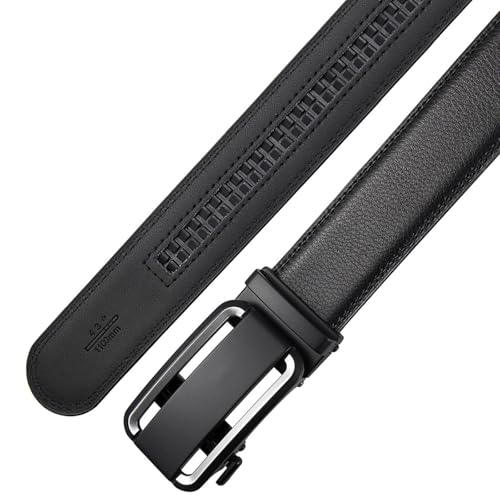 • EFFORTLESS TO USE: Experience the ultimate convenience with our leather belt. Simply slide it into the sliding buckle, pull it through, and the click-it buckle automatically locks in place. Releasing the belt is just as easy - gently push the lever on the side of the automatic buckle, and the lock snaps shut. Enjoy the seamless simplicity and smoothness of our ratchet belt design.