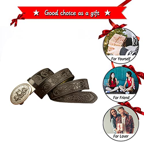 • Carved Embossed Belt for Unisex: This Belt Featuring Embossed Pattern, is made of a retro flower pattern that is of stereo perception, (check The Picture) .which makes it eye catching and vintage stylish, This Accessory Adds The Perfect Touch To Any Pair Of Pants.
