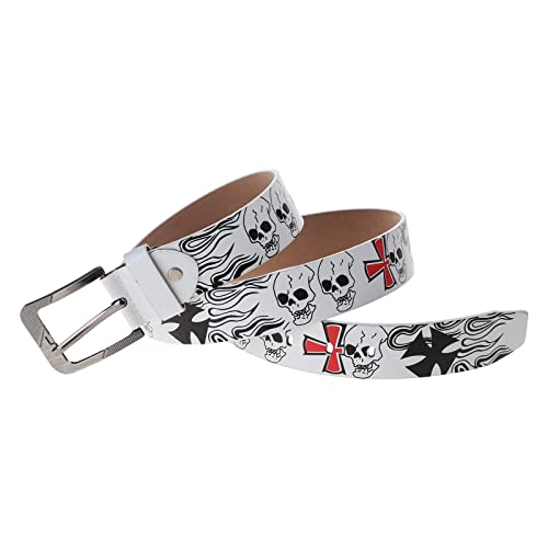• Skull Print Men Waist Belt: Our men belt with punk-style appearance, fashion skull pattern printing & pin buckle designed, pupular and better show the personality and highlight your unique aesthetic.