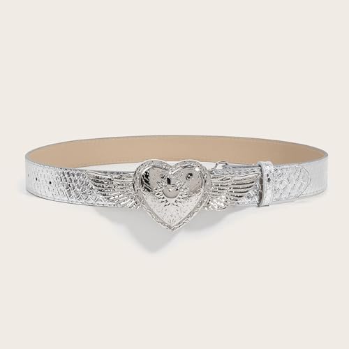 UncleS PU Leather Belt with Heart Buckle Women's Folk Belt Elegant Waist for Trousers Dress Single Waist Decorations PU Leather 3
