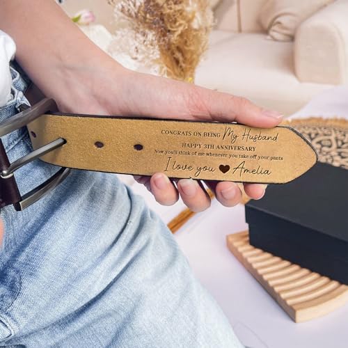 HOT ! Personalized Congrats On Being My Husband Happy Number-th Anniversary Belt - Custom Engraved Leather Belts Gift For Husband on Father's Day, Christmas Gift for Him, Boyfriend