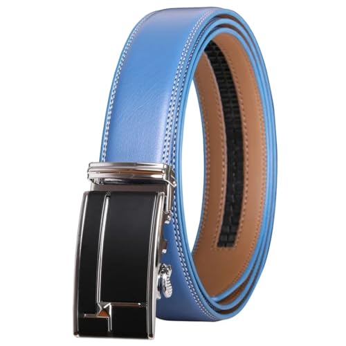 More information about Men's Ratchet Genuine Leather Belt Cowhide Jeans Blue Automatic Alloy Buckle Casual Belt