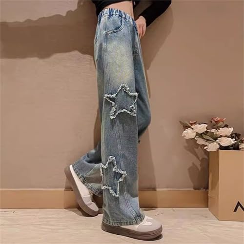 HOT ! Girls Baggy Jeans High Waist Elastic Loose Fit Wide Leg Casual Denim Pants Streetwear Teens Straight Pants Y2K Trouser