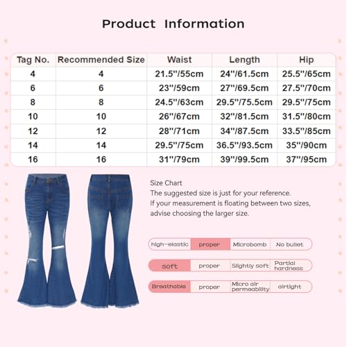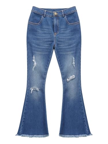 Hansber Jeans for Girls Flare Jeans Bell Bottoms Denim Pants Split Raw Hem Summer Casual Denim Trousers 6
