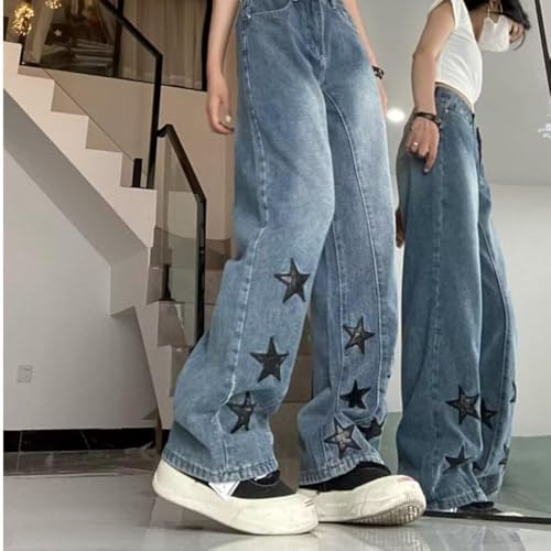 HOT ! Star Pattern Denim Jeans, Spring/Fall American Vintage Loose Straight Leg Pants