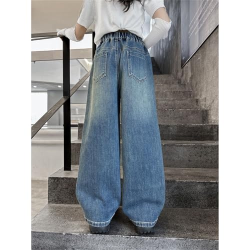 Betadog Girl's Long Denim Pants Casual Wide Leg Jeans Pants Streetwear Girls' Pull on Jeggings Girls Cargo Pants 4