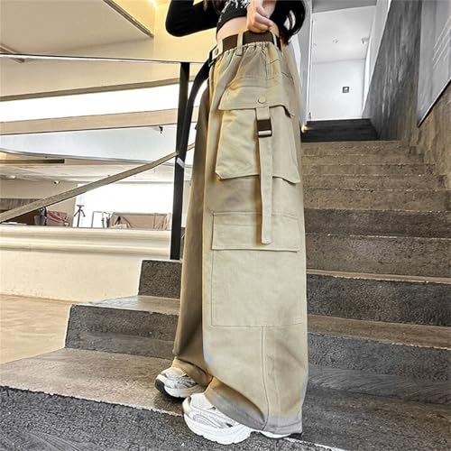 HOT ! Girls Cargo Pants Wide Leg Streetwear Kids Pants with Pockets Trendy Jogger Trousers Parachute Pants