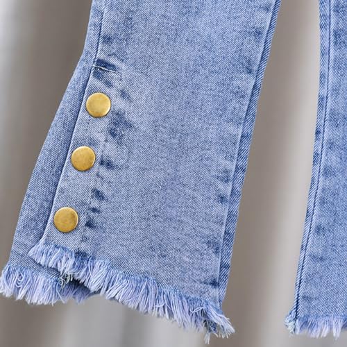 Big Girls Stacked Flare Jeans Cute Lace Up Bow Side Elastic Waist Palazzo Denim Pants Tummy Control Teens Jeans 6