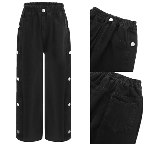 Girls Kids Denim Jeans Pants Straight-Leg High Elastic Waistand Buttons Trousers with Pockets 5
