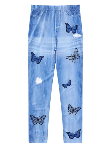 Hularka Kids Girls Stretchy Jeans Jeggings Butterfly Printed Denim Leggings Trousers Casual Denim Skinny Pants 7