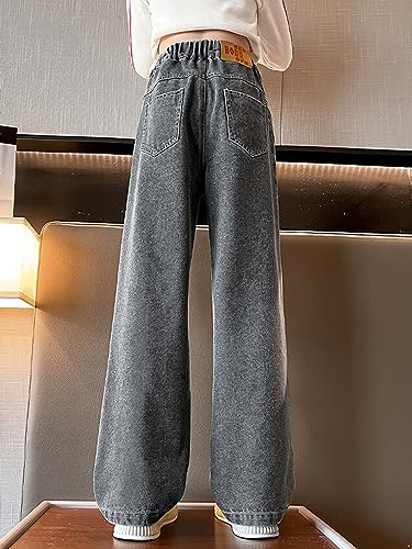 Hularka Kids Girls Ripped Jeans High Waist Bell Bottom Denim Pants Casual Straight Leg Distressed Trousers Bottoms 5