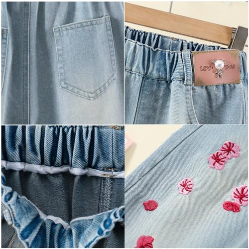 More information about Girls Baggy Jean Casual Wide Leg Denim Pants Flower Embroidered Elastic Waist Kid Trousers Size 4-14 Years
