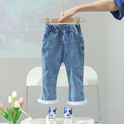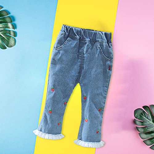 HOT ! Kids Baby Girls Strawberry Embroidery Jeans Toddler Elastic Waist Denim Pants Casual Trousers with Pockets (Blue, 3-9 Months)