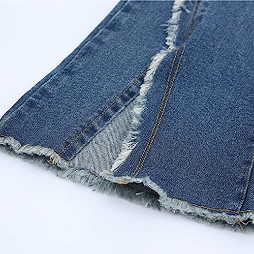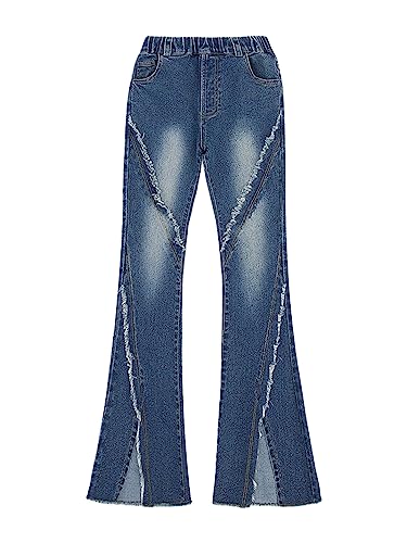 Big Girls Kids Ripped Distressed Flared Jeans Casual Denim Pants Bell Bottoms Ruffled Hem Trousers 6