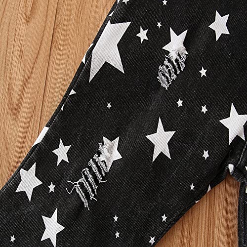 Kids Girls Fashion Flare Jeans Elastic Waist Ripped Stars Pattern Print Denim Pants Bell Bottoms Casual Trousers 6