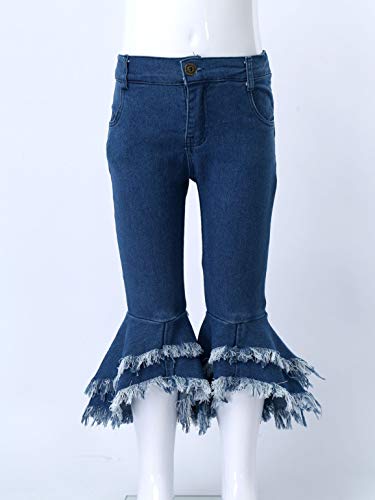 Kids Girls Tassel Flared Jeans Ribbed Bell-Bottom Denim Pants Fashion Vintage Latin Jazz Dance Legging Trousers 6