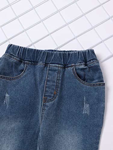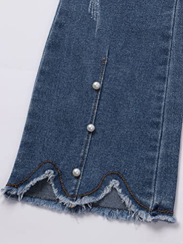 Aislor Girls Casual Elastic Waist Tassel Irregular Hem Beads Flared Jeans Kids Distressed Denim Bell Bottom Trousers 6