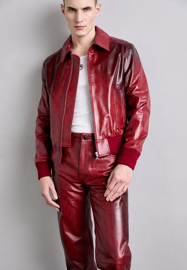 HOT ! MOONOGRAM EMBOSSED WIDE LEG PANTS - Leather trousers