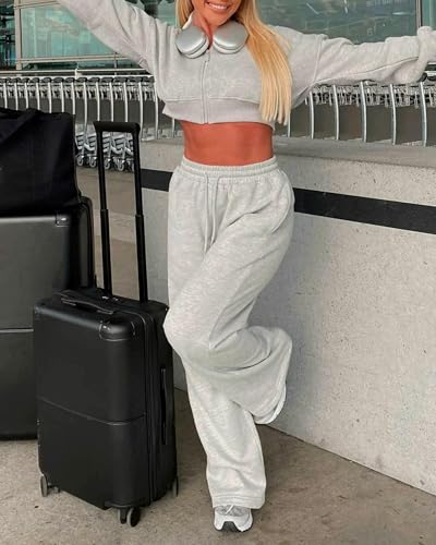 AROGONE Women's Casual Drawstring High Waisted Sweatpants Wide Straight Leg Lounge Pants with Pockets 1