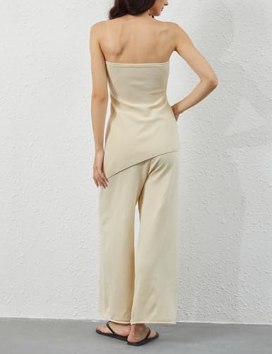 • Design: Strapless tube tops, asymmetrical hem 2 piece lounge sets, casual elastic waistband wide legs pant with two side pockets, relaxed fit in daily life