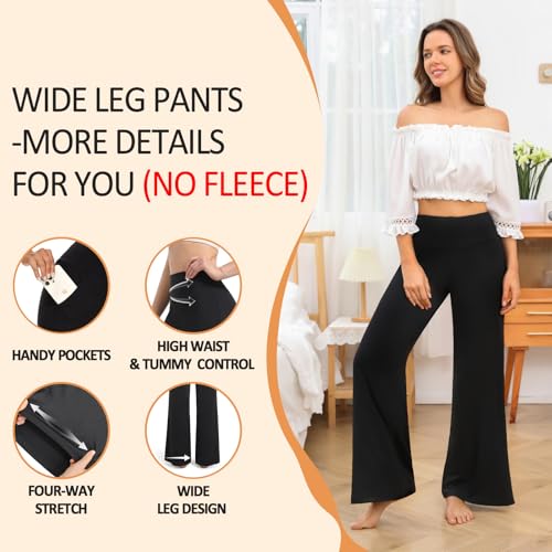 we fleece Womens Wide Leg Yoga Pants with Pockets High Waisted Casual Lounge Loose Dress Petitel Palazzo Pants 2