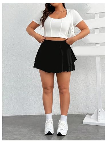 Women's Plus Size Skorts Tiered Layer Ruffle Hem Skirts High Waist Lettuce Trim Mini Summer Shorts 6