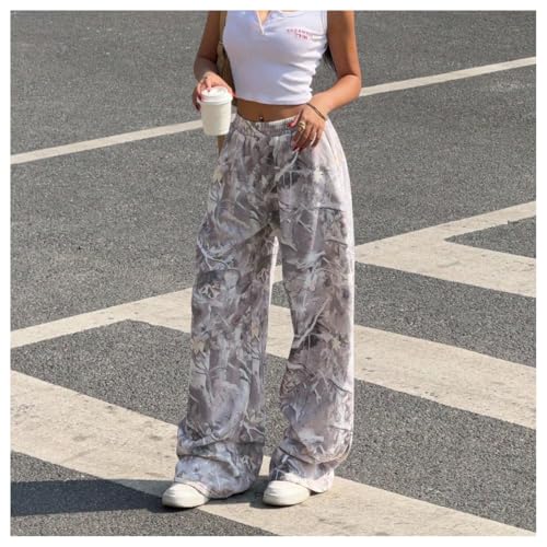 HOT ! Women's Y2K Camo Maple Leaf Print Sweatpants Baggy Hip Pop Elastic Waist Long Pants Streetwear