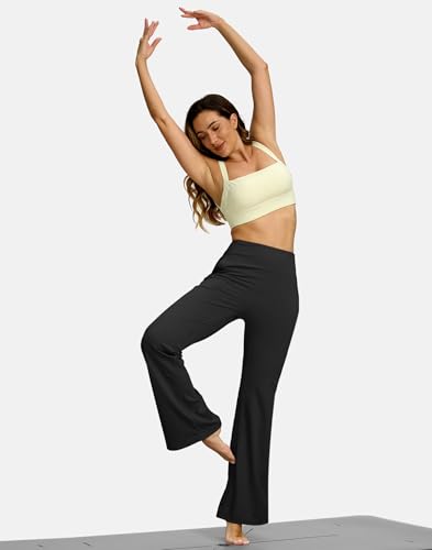 • Soft & Stretchy: Super comfy and soft, santiny flare yoga pants are crafted from breathable, moisture-wicking and squat-proof fabrics. They stretch perfectly while giving a smooth appearance without a tight feeling during your yoga practice.