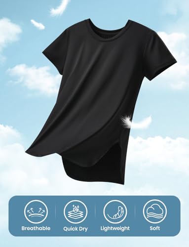 • 【Side Slits & UPF 50+】Soft lightweight fabric with comfortable crew neck and embellish solid color monotone style make this basic yoga tops for women more vitality.High Side Slits make your legs look slender, long back hem and loose fit allow for more unrestricted movement and give you a better wearing experience for both sports and daily.UPF 50+ yoga shirts provide great protection against harmful UV rays.