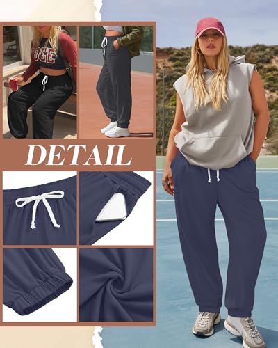 Neer 3 Pack Women's Plus Size Sweatpants Casual Loose Fit Drawstring Joggers Lightweight Athletic Lounge Pants with Pockets 5