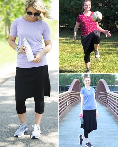 Women Athletic Knee Length Skirts with Leggings,Skorts Leggings&Skirted Capris Skorts for Women Yoga Pockets 4