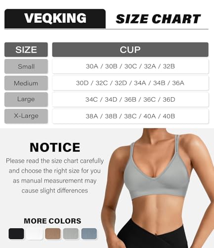 HOT ! VEQING Seamless V-Neck Women Sports Bras, Padded Cross Back Wireless Low Impact Workout Yoga Bras for Small Chests, 3 Pack