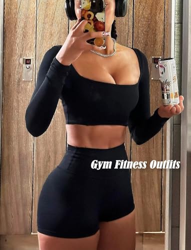 • FEATURE: TZLDN sqaure neck workout tops for women, long sleeve with thumb holes, great quality non see-through material, clean fit cropped gym top shows your waistline and greater figure proportion and the elastic bottom band keeping no riding up, provides soft lightweight comfort and moderate compression